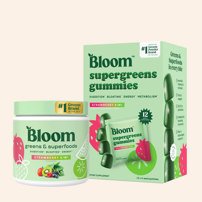 Our Supergreens Gummies make it easier than ever to fill the gaps in your diet, support gut health, and bloom into your best self!”